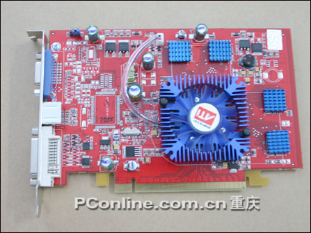 蓝宝石X700白金版显卡使用了红色的6层PCB板,其核心基于RV410核心采用TSMC 0.11微米制造工艺,集成了1.2亿晶体管,核心频率为425MHz,具有8条渲染管线,6个顶点引擎,支持SM2.0B及Direct 9.0。显存采用了4颗BGA封装的英飞凌DDR3显存,构成128M/128bit标准规格;显存速度为2.0ns,频率为800MHz,应该还有相当大的超频空间。