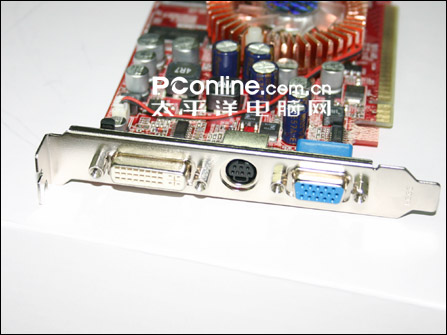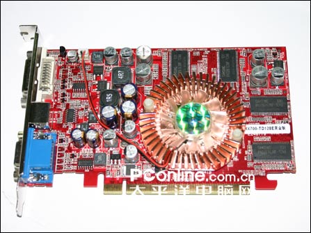 微星X700 128E黄金版采用惯用的红色PCB底板,搭配微星专利的28DB静音散热器,显示核心部分采用台积电0.11微米工艺的 X700原生PCI-E图形芯片,拥有独立的8条渲染管线6条顶点着色引擎,默认核心频率高达400MHz。存方面显卡采用了8颗TSOP封装三星4.0ns显存颗粒,组成了总容量128MB位宽128bit的显存规格,显存频率为500MHz。