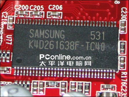 显存方面,微星X700配备了三星4.0ns的显存颗粒,正反共8颗,组成双128显存规格。