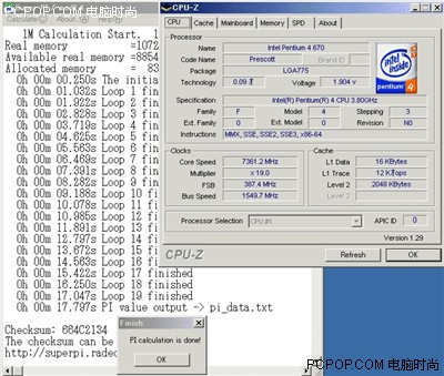 世界最高超频频率7361.2MHz,SuperPI 1M=17.047秒
