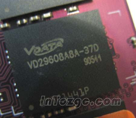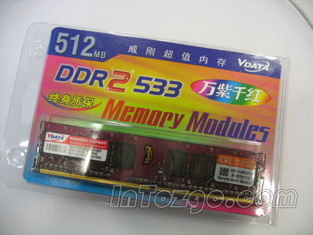 万紫千红系列和上面的红色威龙相比,两者最大的差别在于前者并没有采用散热片,因此并不适合于超频,其余规格基本相同。此款内存的S/N码为545T55197489,采用的是VDATA颗粒,颗粒生产于05年第41周。