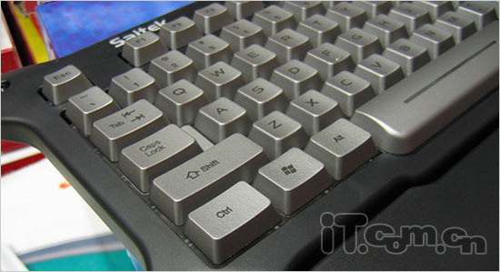 这款Eclipse(日蚀)键盘与Saitek较早上市的那款GAMING键盘在外形上完全一致,只是此款键盘为黑色边框、银色键位,而且没有独立的小数字键盘。四个边角设计成如同太空船支架一般的造型是Saitek一贯的风格,这也是市面上很少有的个性之作。