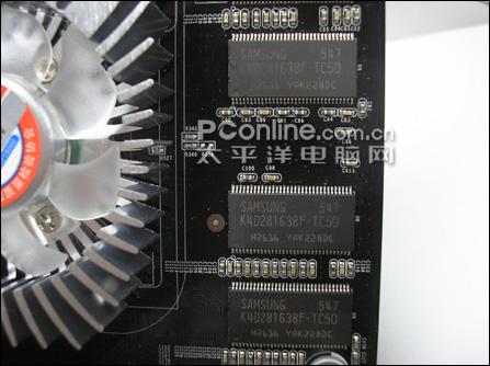 显存颗粒采用了三星5ns TSOP封装的显存,正反8颗显存颗粒组成了128M/128Bit规格,默认工作频率400MHz。不过坦白说400Mhz的频率对于6600级别的显卡来说未免太低, 即使是6600TSOP,笔者认为的至少要将频率提升到350Mhz/500Mhz才有起色。希望维硕再下一阶段解决这个问题。