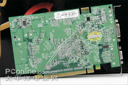 由于显卡采用了一体式供电设计,所有供电电路都在显卡的右侧,这是经过改良的6600GT底板。