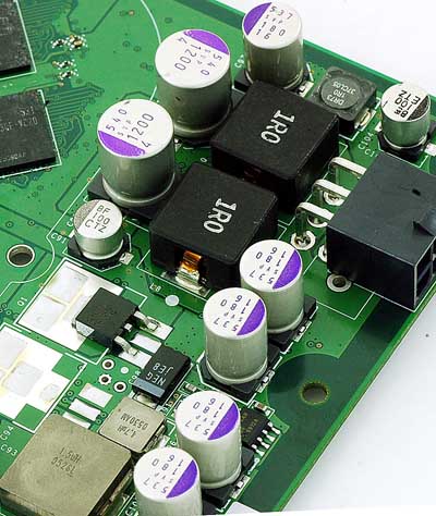 做工方面可谓豪华, 10 层 P317 板型及供电设计, 大量高品质的固态电容与封闭式电感线圈,成为天行 6800GS 高度稳定性的重要保障。