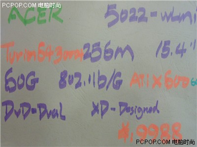 这款采用Turion64 ML30处理器,15.4寸WXGA镜面屏幕以及X600显示核心的笔记本一上市就得到了用户的青睐,而ACER在新机上市的时候就使用了一贯的低价策略。目前这款机型国内的市场报价已经跌至9999元,根据来自网友的信息Aspire 5022最终成交价格基本在9500元左右。