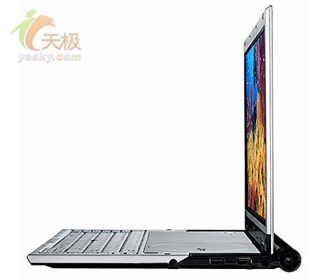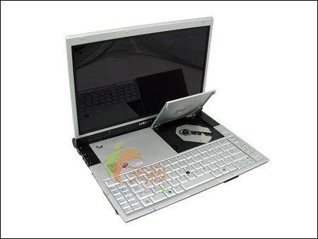 为了达到更轻更薄的目的而采用了揭盖式光区的设计,这种设计目前只有松下有类似的设计,可以将本本做得更薄。在由于轻薄而采用的揭盖式光区对整机的结构造成了很大的困扰,这也正是三星 X1 颠覆传统笔记本内部结构设计的最根本原因。而对于笔记本的音响系统来说,决定其品质的不外呼扬声器本身的素质和共鸣腔的设计。而在 X1 上,通过机构设计师创新的设计,这两点得到了完美的解决。 X1 的扬声设备被设计在了主机的转轴之上??于是获得了足够大的空间来保证音质和音量,但扬声器的方向有所妥协,两个扬声器分别指向机身两侧,而不再直接对准用户。通过这些设计,令X1在保持自身优秀素质的情况下却只有只有1.7kg重量。