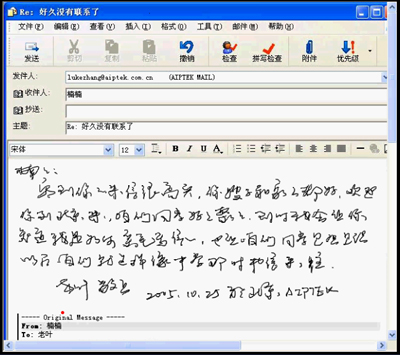 如果您已经厌烦了千篇一律的黑体字、宋体字。如果您想用自己的笔迹给家人、朋友发一封E-Mail。如果您想用潇洒的文字、图片展示灵动的个性。爱普泰克蓝牙电子白板可以帮助您完成这些愿望。详情请联系:北京易和。