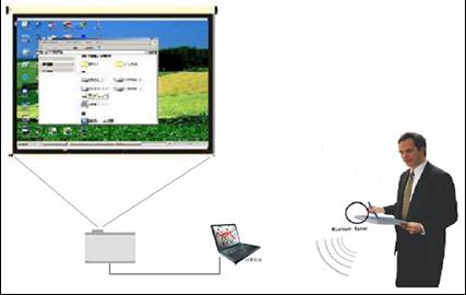 另外,这款蓝牙电子白板还可以让您结合投影机完成一场精彩的会议简报。它全部采用蓝牙技术,使用户彻底摆脱了线缆的各种困扰。使用者可以带着它自由走动,同时可轻松的加上批注或绘图,也可以使受众者随时通过此电子白板进行问题,建议,意见的反馈,所有的这些操作均可通过投影机投影显示出来。可谓是投影机的贴身伴侣,创造了移动教育,移动会议的新的里程碑。