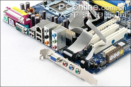 华擎 775Twins-HDTV主板集成现实功能,但是主板I/O背板上并没有提供VGA输出接口,而是通过以上这块随主板附加的VGA_HDTV卡来实现,这块子卡上不仅有VGA视频输出接口,还设计了3个RCA-type组合视频输出接口,可将电脑连接到所有支持组合视频输出的高清晰电视,可以在大屏幕TV上玩电脑游戏,感觉一定很不错!另外,HDTV高清数字电视是现在的发展方向,目前已在国内部分大城市正式开通,华擎这块主板可支持HDTV这一功能相信能吸引不少消费者。