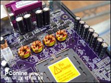 主板采用了4相豪华供电设计,使用了大量的高品质滤波电容,确保主板在使用高耗能的双核处理器时也能提供足够的电流。该板提供了4条DDR2内存插槽,支持DDR2 533/667内存双通道。