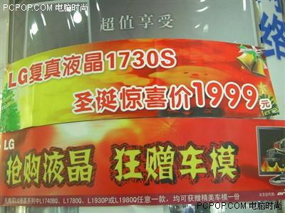 LG液晶显示器在很多消费者心目中的口碑还是不错的,同样的销售业绩也在节节攀升。旗下拥有色彩复真芯片的1730S在去年圣诞期间就已经打出惊喜价1999元的大幅广告,吸引了不买家的注意。