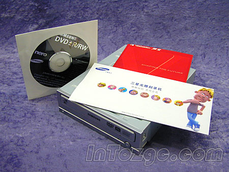 这是三星目前最新的DVD刻录机,也是三星下了一番功夫的优秀产品,这在本站以前的评测中就可以看出一二。