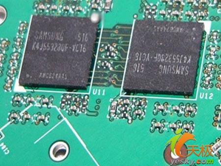 Quadro FX 4500支持256Bit内存带宽,采用Samsung DDR3 1.6ns BGA内存共512MB,虽然采用1.6ns内存频率规格可正常运作于1.2GHz,不过作为工作站绘图卡在内存频率上设定得非常保守,因此Quadro FX4500只预设为1.05GHz,和Quadro FX4400一样内存带宽为33.6GB/s。