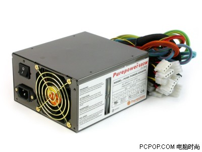 PurePower 680W采用了与BTX-450相似的手提包装,也显出了产品的与众不同之处。电源采用黑色镀铬外壳,外观稳重大方,这与Tt一贯主张的前为时尚风格大异其趣。PurePower 680W分量极沉,重量达到了2.6千克,单是连接线就给人沉甸甸的感觉,可见产品的用料非同一般。