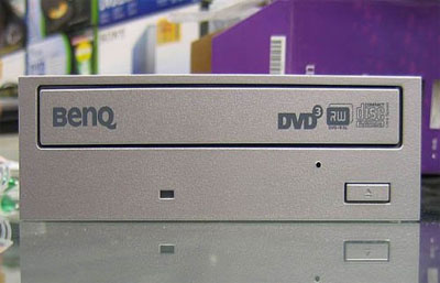 明基这款全能王是最近才上市的,它也是一款支持RAM的刻录机。明基DQ6016速DVD刻录机依旧采用明基惯用的紫色包装,这款内置刻录机采用短机身设计,即使小机箱也能适用。面板的右下方有一弹出/进仓按钮,略微突出于面板。总的来说,中规中距。