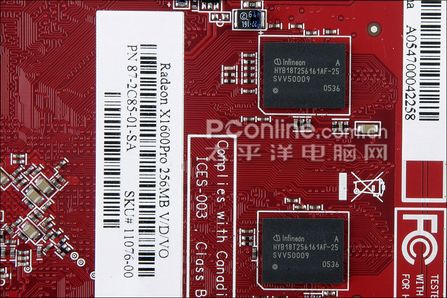 正反面一共8颗GDDR2模组组成256M 128bit的规格