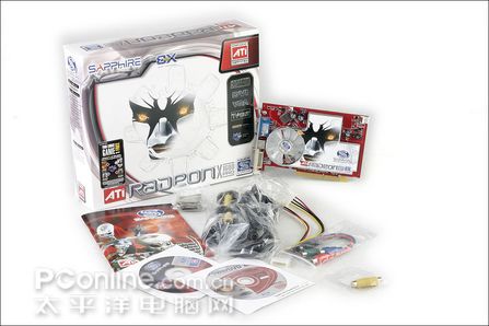 蓝宝RadeonX1600Pro AGP附件比较齐全,包括色差输出和多条视频线,此外还附送小4pin的电源线。除了驱动光盘以外,还有一张正版的PowerDVD的播放软件。