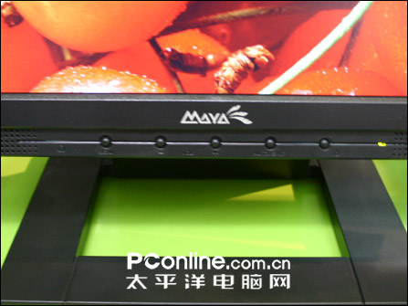 面板下沿的正中央处呈一字形的排列了五个小圆点式的显示器控制调节按钮,操作起来还是比较方便的