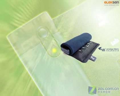 近日,Eleksen公司推出了一款可随身携带的超漂亮布制键盘。这款2.4盎司(68克)重的蓝牙键盘采用特殊的防水触感布料,可以卷起带走。其主要电子器件被放置在一个塑料壳中,而LED灯则可显示该键盘与PDA、手机或其它蓝牙设备的通信。这款产品为63键笔记本键盘尺寸。目前,该公司尚未透露这款键盘的售价信息。