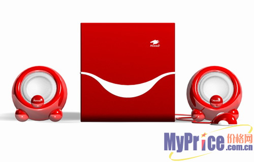 准确的说这款C300Q定位于时尚的MM一族,音箱共有红、绿、橙、白和黑五款颜色,用户可根据自己的喜好随意挑选。主音箱采用纯木质设计,面板上除了轻骑兵的Logo外,只有一个圆弧形的棱角设计,感觉像是在微笑。虽然设计比较简单,但是鲜艳的色彩和外观结合在一起,给人特别亮丽的感觉。
