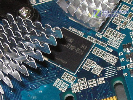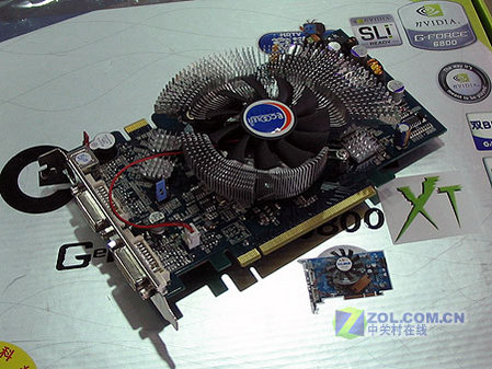 显存方面,这款影驰6800XT玩家版的显存规格与6800GT相同,采用了三星GDDR3 2.0NS显存颗粒,正面8颗,组成256MB、256BIT显存规格。接口方面,影驰6800XT玩家版采用了顶级显卡上常见的双DVI+多功能视频输出接口的组合。