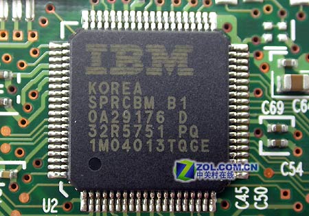 硬盘马达的主轴驱动芯片则使用IBM编号为1M04013TQGE的芯片,产自韩国。