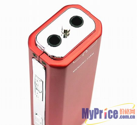 两个耳机插孔被并排设计在机身的顶端,标准3.5mm口径适合接驳任何普通随身听耳机,;为了配合情侣使用,DE808特意赠送了一黑一白两副耳机,不用您再去购买了。DE808支持MP3和WMA音乐格式播放,具有5种音效模式可调,并具备5种播放模式;机身使用了sigmatel3410ta4解码芯片,音质表现非常不错,搭配的耳机音质也很好。