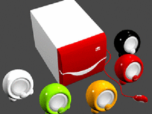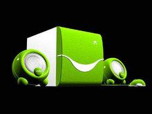 从产品型号上就可以看的出来,C300后面带的“Q”很巧妙的说明了这款产品的定位:卡通,时尚。产品共有黑、白、绿、红和黄色5种色调。全木的低音炮与工程塑料的卫星箱都充满了现代感,低音炮面罩上一个看似笑口常开的图形再配上右上角酷似半眨眼睛的轻骑兵标志,更是卡通至极。