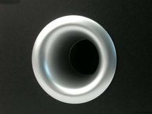 XE235的低音单元并未裸露在外,其独特的内部两级倒相设计堪称一绝。普通2.0多媒体音箱的低音单元内部,通常只有一个腔体,倒相孔直接连接腔体。创新XE235的低音单元内部设计有双腔体,前后倒相腔通过一根细倒相管相连(如上图)。前腔体正面是大倒相孔。这样的设计,理论上能够有效的提升低频力度,使低音更强劲、下潜更深。不但如此,其前置的倒相管采用双向弧形外廓声学设计,严格计算的倒相管弧形尺寸与形状,能有效控制倒相管与箱体谐振,降低噪音使低音更纯净、瞬态响应更佳。
