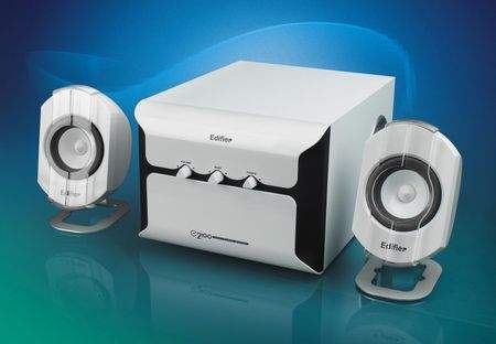 E2100的卖相非常不错,黑白相间的线条,勾勒出迷人的“身段”。呵呵,它给人的第一印象就是非常细腻,颇有点iMAC的味道。E2100低音炮的前面板和卫星音箱的外壳,均使用了PU漆与磨砂结合的工艺制作,使得音箱的外观靓丽高雅,且不易退色,常用常新。其内部放置了4英寸低音扬声器单元,能够回放出强劲的低音效果。