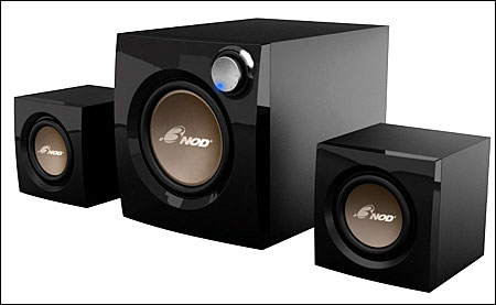 两个副箱的设计同主箱风格一致,可谓遥相呼应相得益彰。卫星音箱内部各采用了一只三寸全频带发音单元,在喇叭的正中位置还印有三诺的英文商标“3NOD”的字样。每个卫星音箱的功率为8W,而且做了全防磁设计。