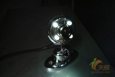 外观上卡麦拉-天王星这款摄像头到设计得比较传统,并没象时下有些摄像头样设计得“花里胡哨”的,属于早期摄像头样貌,到是摄像头上镶嵌的4枚指示灯很是别致,在黑暗处这四枚指示灯便会自动感应放射出幽幽的白光,有点独特。