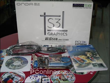 昂达的霹雳S18 PRO显卡采用纯白色的外包装,包装上清晰的标明了显卡的品牌型号和显卡的接口类型。昂达霹雳S18 PRO显卡采用0.11微米制程的GammaChrome S18芯片,拥有4条渲染管线,针对HDTV进行过优化,能大幅提升HDTV的效果。支持DX9.0,接口是原生的PCI-E。显存方面,配备了8颗TSOP封装的三星4ns DDR显存颗粒,构成了128bit/256MB的组合,显卡的核心/显存的频率为350MHz/500MHz。显卡采用深棕色PCB,公版设计,整体来看,无论是PCB走线还是元件布置都显示出这是一款非常成熟的产品。