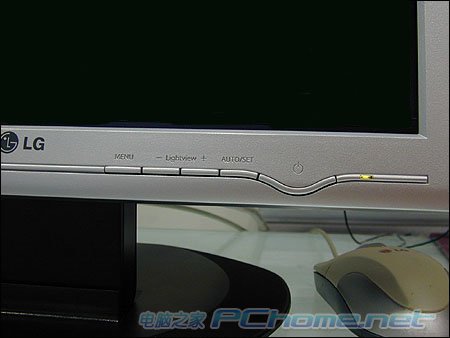 该款产品在OSD控制按键上很有特色,功能调节键呈一字排开式,其中设计了可用于自动调节画面的SLECTE/AUTO键,7种亮度调节模式也只需要一键即可完成。此外,开关键别出心裁的设计成弧形,不仅保持了LG惯有的微笑造型,也避免了在调控中按错按钮而关闭显示器。