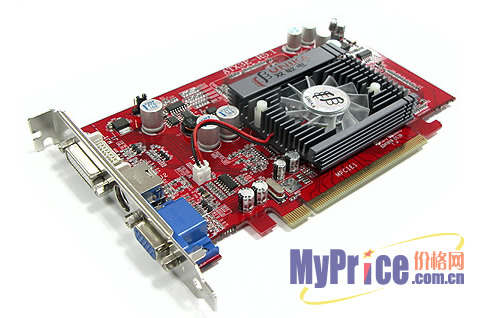 火旋风PCX5518 TURBO基于Radeon X550核心,搭载现代mBGA DDR 3.6ns显存,mBGA显存拥有出色的电气性能、较低的功耗和发热量。4片显存组成128M/128bit规格,默认频率高达450/550MHz,这样的配置已经高于标版,同时还留有了不小的频率空间。