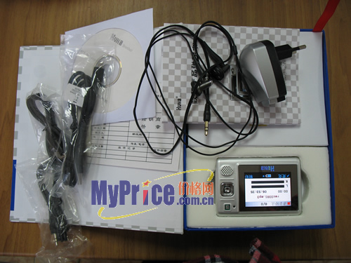 华纳MP4的外包装虽然不华丽,但可以算的上是精美。其配件较为丰富,有:说明书, USB连接线,耳机,驱动光盘,充电器等。