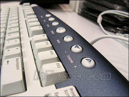 这款产品使用的是PS/2接口,且罗技把键盘的表面进行了弧面处理。敲击键盘的时候,俺感到键力偏软,虽然没有过去那清脆的感觉,但也非常舒服,而且按键的时候一点也不费力,这可比同等价格的杂牌产品要好的多了。