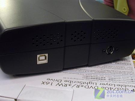 HP dvd740e摒弃了之前的硬式风格,采用了流线型设计,虽不是超薄机身,但整体感觉还不错。散热方面,740e在机身上方、机身侧面和机面尾部都设计了散热孔,大大减小了机身刻录时的热量。