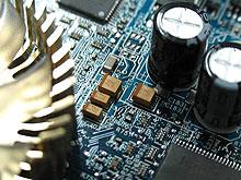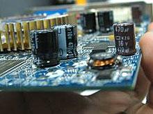 技嘉X600PRO采用了惯用的蓝色PCB板,因为只采用了风扇作为散热设备,减轻显卡重量的同时提高了散热效率。这款产品还有一个非常明显的特点,采用了大量的钽电容(钽电容极性高,在焊接时对工艺的要求很高,使用中性能非常好,不会出现问题,这就是钽电容贵的原因。)来取代我们常在显卡上能看到的电解电容,这样一来自然可以使显卡稳定工作在更高频率下,当然也更有利于超频。而这种设计完全符合ATI RX600PRO标准,并且市面上很少能看到这样的优质显卡。
