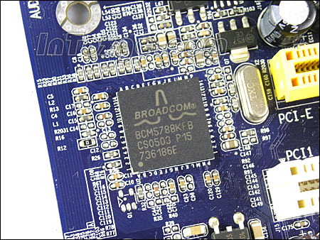 功能方面,这款主板集成了ALC 880音效芯片,能够支持7.1声道高品质音效输出功能。同时它还板载Broadcom BCM5788KFB芯片组,支持1000M的网络传输速度。