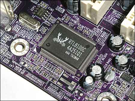 主板集成了6声道音频芯片,及10M/100M以太网卡。