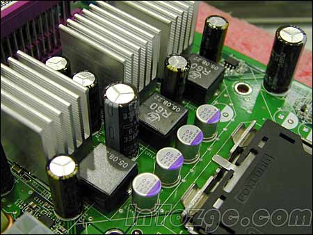 供电部分很厚道,采用三相供电设计,并且使用成本较高的R60密封式电感以及固态电容,并且在MOS管上加装了散热片,保证系统的稳定。