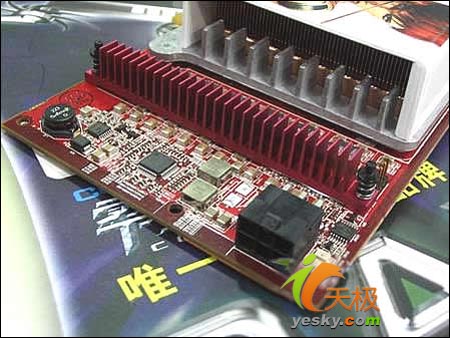 铭?X1800XT完全遵循公版制造,采用了红色PCB,ATi原厂的双槽位整体散热器,巨大的扇叶加上纯铜散热鳍片为显卡稳定工作提供了绝对的保障,抽吸空气的速度非常高,热弥散效率非常高。