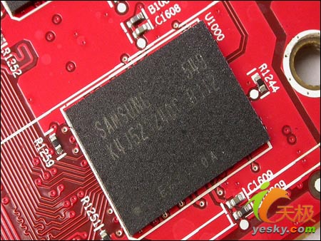 显存方面,迪兰恒进X1800XT CF Edition采用的是三星顶级颗粒,其编号为K4J52324QC-BJ12的1.2ns显存,8颗16M×32bit显存全都分布在正面,组成了512MB 256Bit的规格。