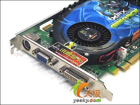 接口方面,XFX讯景6800GS具有VGA、S-Video和DVI三种输出接口,满足了用户的多种需求。此外它散热器采用了铜铝结合的设计,辅以热管及涡轮风扇可以迅速带走核心及显存颗粒发出的热量,有效保障显卡的稳定运行。
