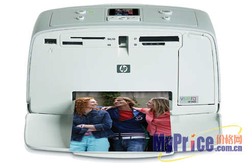 HP Photosmart 335机身内置了多合一读器,可支持CF I/II、SmartMedia、MS、SD、MMC等存储卡,用户还可额外添置HP蓝牙转接器,方便打印机与具备蓝牙功能的笔记本、PDA、可拍照手机产品无线连接完成打印工作。此外,打印机机身配备一个1.5寸LCD预览屏幕,可以实现脱离电脑的移动打印,通过预览屏幕可作快速方便的预览及编辑照片或录像的工作,只要一按相关按钮,便可剪裁及放大相片,更可调校光亮度和对比度。