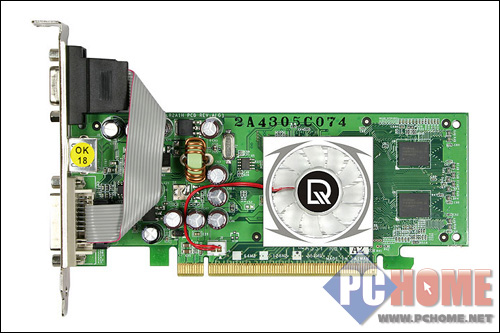 丽台7300GS(PV-T72G)采用了非公版绿色PCB设计,整体布局紧凑,做工还属精细。而显示核心的默认频率达到了550MHz,而显存部分采用的是英飞凌的GDDR2 2.5ns显存颗粒,默认频率达到了810MHz,容量则为比较主流的128M。