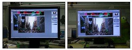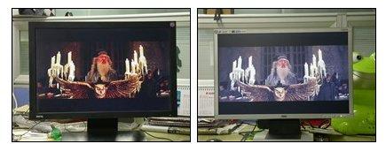 左边的20寸宽屏比右边的19寸宽屏画面质量更清晰