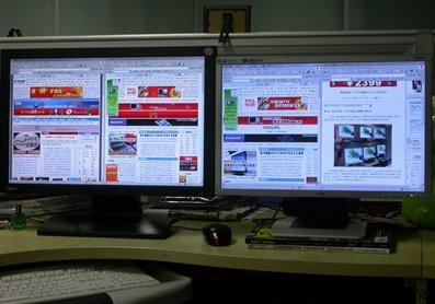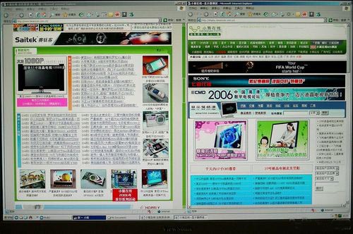 20寸的宽屏已能完整显示两张网页,而19寸还有部分遮挡。在PhotoShop方面20寸产品也更具优势。